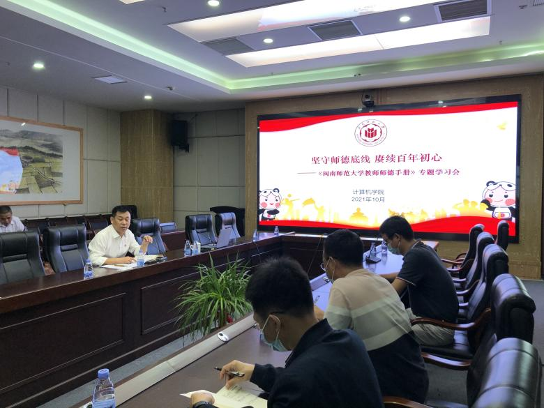 在科技楼1607召开教职工大会暨师德师风专题学习会。会议由学院党委书记祁超同志主持 ,院长林耀进和副院长周豫苹、黄慧分别就有关议题进行宣讲、部署和说明,全院教职员工参加会议。