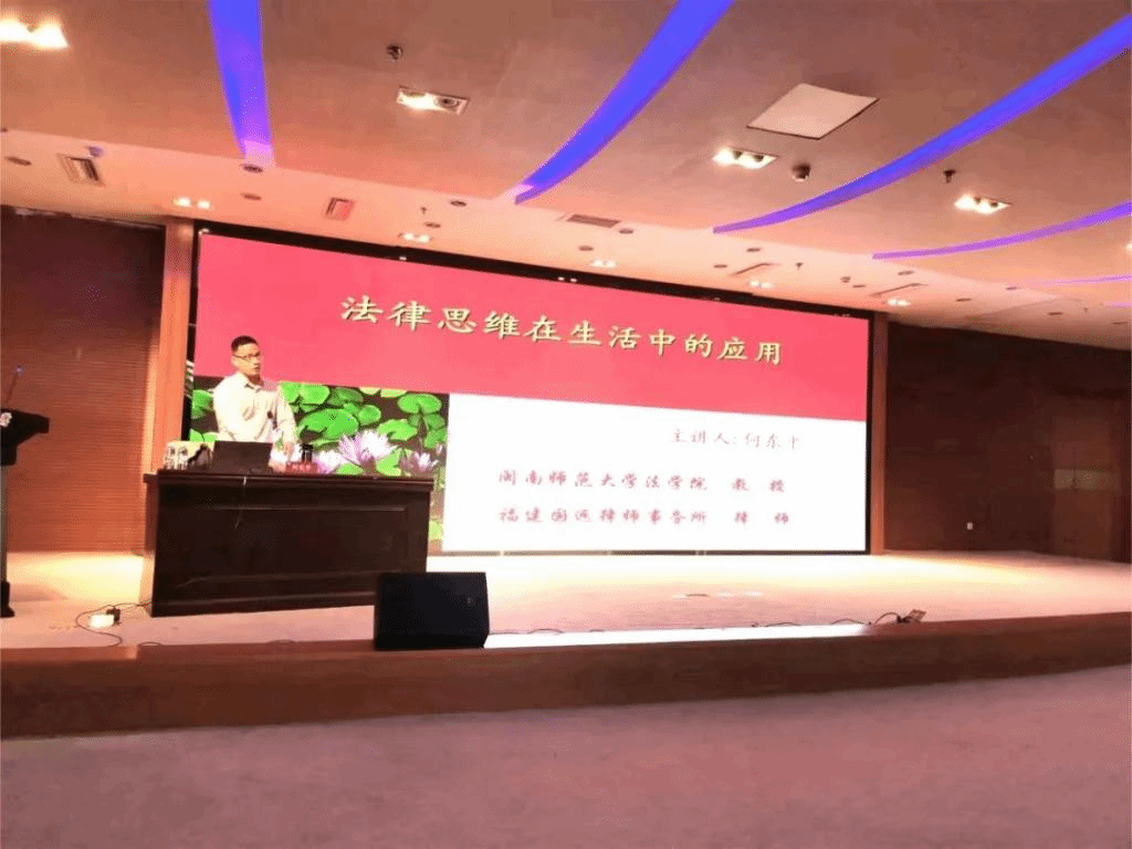 何东平教授以《法律思维在生活中的应用》为题,从“法律思维的内涵与特点、生活中的法律问题例证、法律思维在生活应用的基本思路”三个维度出发,结合大量典型案例生动剖析,深入浅出地以案释法,以法论事。并且,从法理转向法用,以理论联系实际,强调法律在生活应用时要注意证据收集、价值判断以及路径选择。