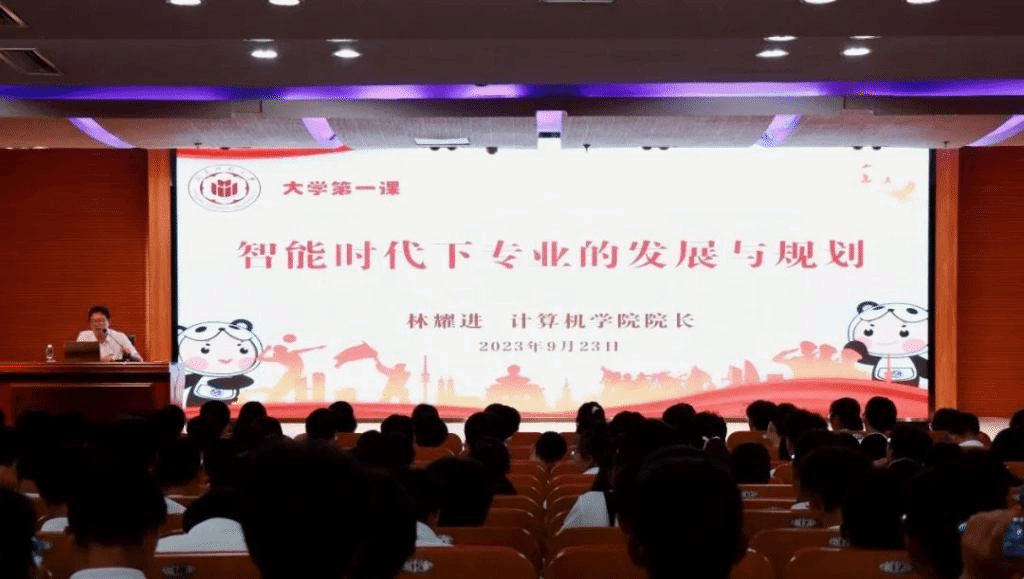 院长林耀进教授以“智能时代下的专业发展与规划”为主题,为全体2023级新生讲授“大学第一课”,并为所联系党支部教工第二党支部成员讲授专题党课。