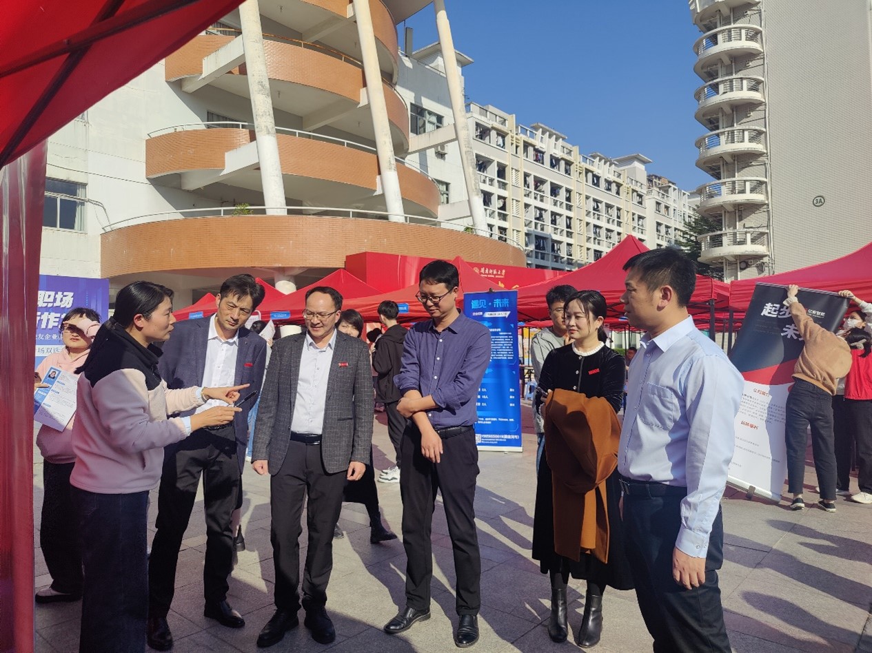 及物理与信息工程学院领导班子到场指导,与用人单位面对面交流,推介学院专业和毕业生,了解企业发展情况和用人需求,探讨实习就业合作等相关事宜。