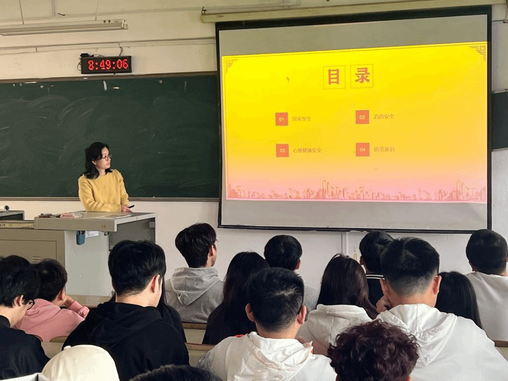 在班会活动中,辅导员、班主任针对不同年级、不同专业学生情况,分别从国家安全、网络安全、个人安全、校园安全、食品卫生安全等多方面开展主题教育。