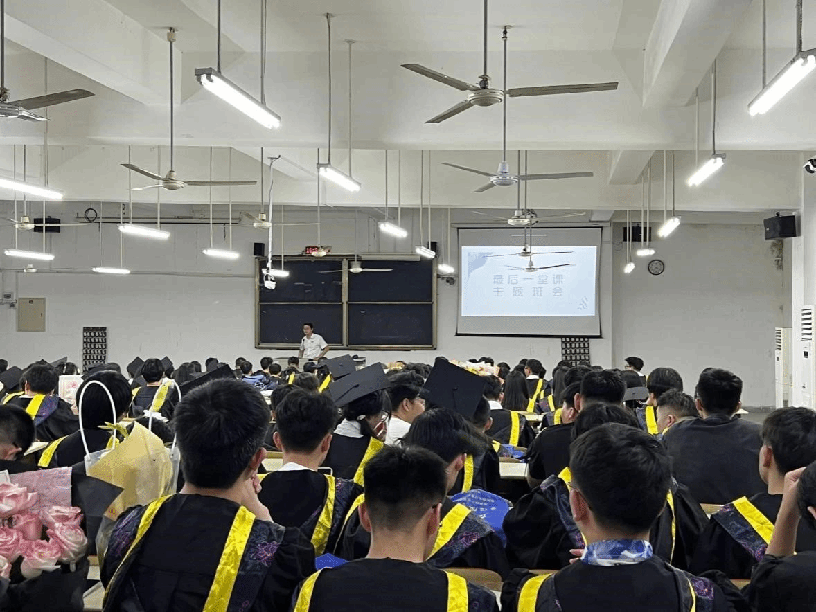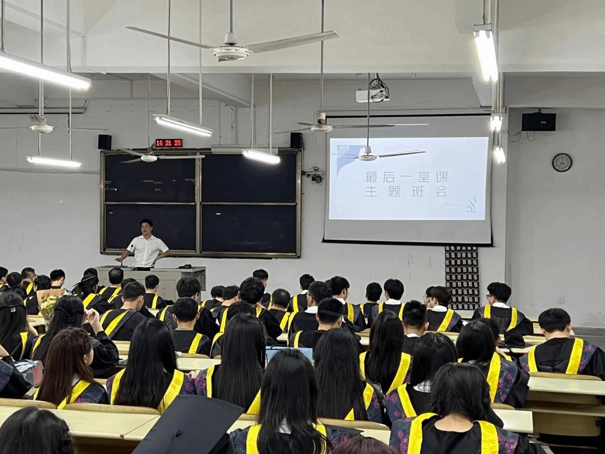 殷殷嘱托,助力扬帆。毕业班辅导员张健、毕业班班主任代表马碧阳开展了“最后一堂课”主题班会,班会内容包含理想信念教育、职业生涯发展教育与劳动教育、禁毒教育、反邪教教育、诚信教育、廉洁自律教育、文明离校、感恩母校等内容。班会上,马碧阳老师鼓励同学们以理想信念为核心,树立科学的世界观、人生观和价值观,引导同学们树立正确的劳动观。张健老师就毒品防范、反邪教等内容开展了相关主题教育,引导毕业生成长思源、成才思进,倡导毕业生文明离校,为校园生活画上圆满句号。