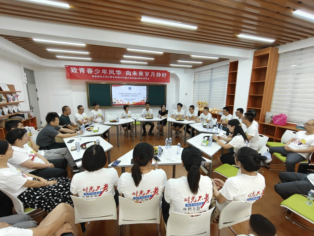 在砺志楼223举办2000级计算机科学与技术本科班“致青春少年风华 向未来岁月静好”毕业二十周年返校活动。学院党委书记祁超,院长林耀进,校党委宣传部、统战部副部长谢斌斌,原辅导员、物理与信息工程学院党委副书记陈丽新,学院党委副书记陈小玲等教师代表参加相关活动。