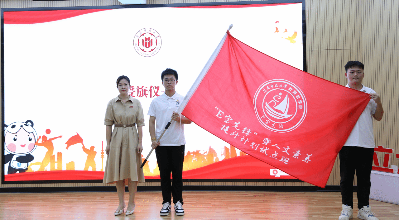 “E宝先锋”暨人文素养提升计划试点班第二期顺利结业,第三期随即启动。学院党委副书记陈小玲老师为第三期“E宝先锋”暨人文素养提升计划试点班授旗。