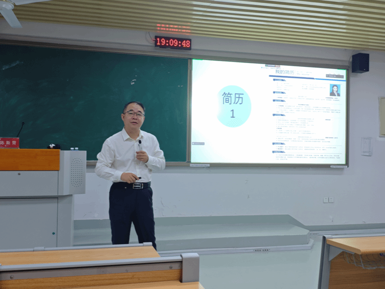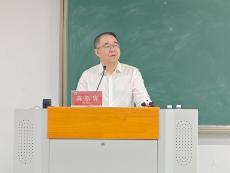 商学院的陈斯胄老师主讲,全体2025届毕业生参加,讲座由辅导员杨士杰主持。