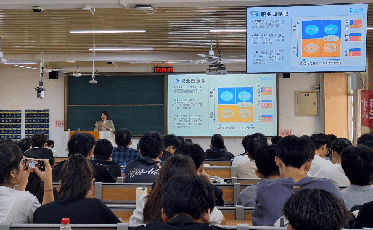 随后,亿星软件人力资源主管林芸女士介绍公司发展历程、业务布局与人才培养体系,重点发布本次秋季校招岗位需求。互动环节,同学们围绕岗位职责、面试流程、薪资结构等提问,林芸主管细致解答,助大家明确求职方向、缓解就业疑虑。