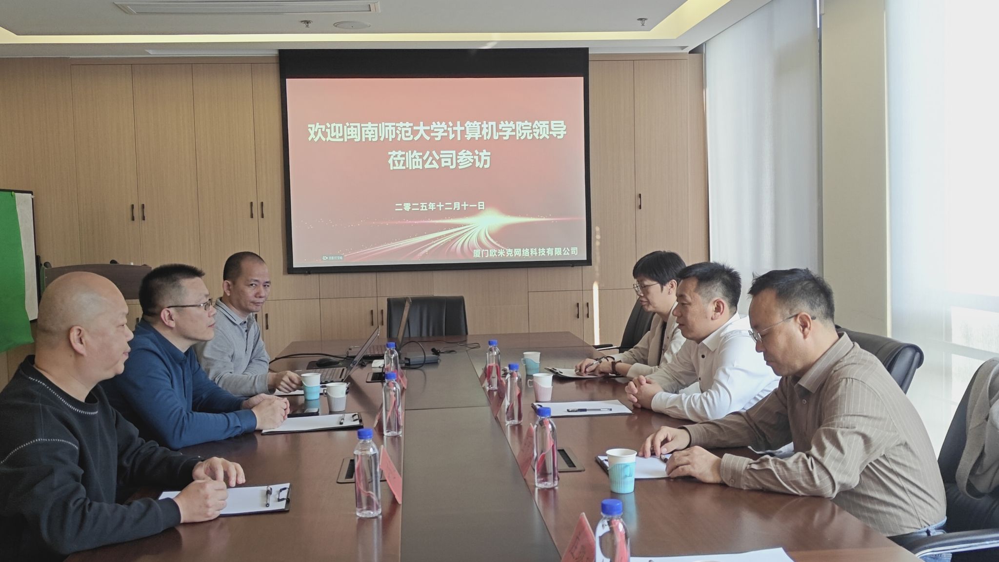 在盛明风环保科技有限公司,校企双方介绍了各自情况,并就长期合作达成共识。在厦门四象志益科技有限公司,考察组参观了办公研发环境,了解了企业运营与核心产品,双方就计算机类专业人才需求及校企联合培养等合作路径达成初步意向。在厦门欧米克网络科技有限公司,考察组看望了实训学生,详细了解实训情况并给予职业规划指导。在苏州科达技术股份有限公司厦门办事处,双方重点围绕共建产业学院的运行机制、合作模式等关键问题深入研讨,明确了后续合作方向。