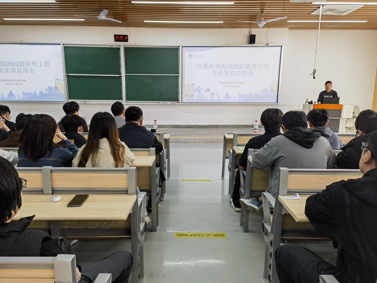 2022级软件工程专业本科生实训总结暨成果汇报会在砺志215顺利召开。学院副院长周豫苹、院长助理王育齐、厦门欧米克网络科技有限公司负责人、福州榕智信息科技有限公司负责人、2022级辅导员以及2022级软件工程本科生共同出席本次会议,会议由学生代表李亚梦主持。