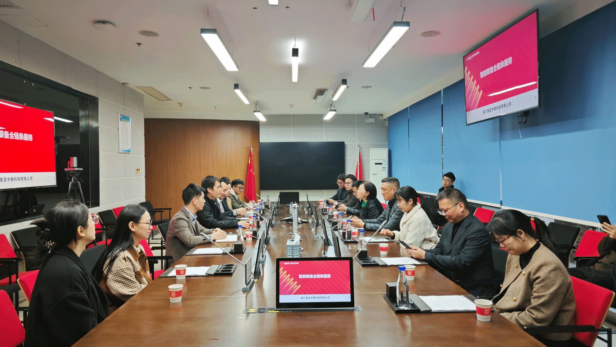 在美亚中敏科技有限公司,企业负责人陪同参观公司技术展厅与研发中心,系统展示了其在特种计算机、安全服务器等智能装备研发制造,以及公共安全解决方案等领域的业务成果与技术实力,同时表达了在相关专业人才招聘、技术协同创新等方面与学校开展合作的积极意愿。