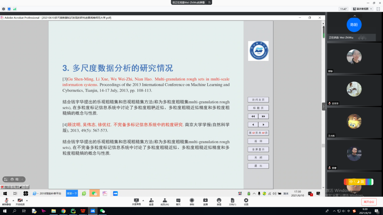 师生作题为“多尺度数据知识发现的研究进展”的线上专题讲座。讲座在林耀进院长和吴教授轻松的交谈中开始,林院长对吴教授的研究领域和相关研究成果进行了简单的介绍。