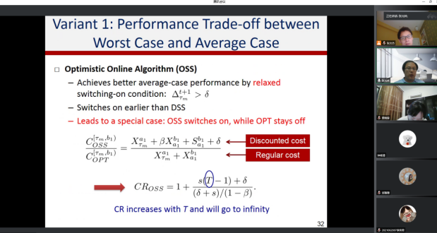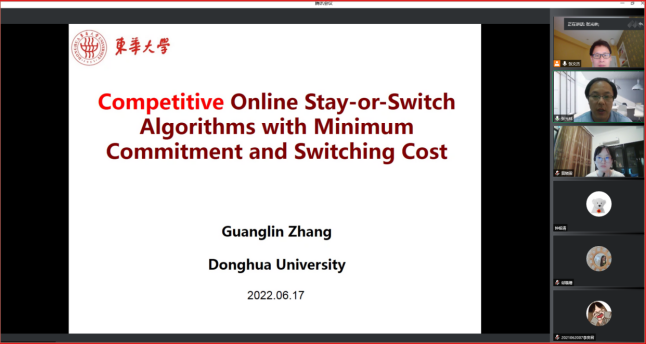 师生开展线上专题报告,报告题目为“考虑最小承诺与切换成本的在线算法竞争性分析”。本次报告由学院张文杰教授主持,张文杰教授首先对张光林教授的科研领域和相关成果进行了简要介绍,随后张光林教授开始作专题报告。