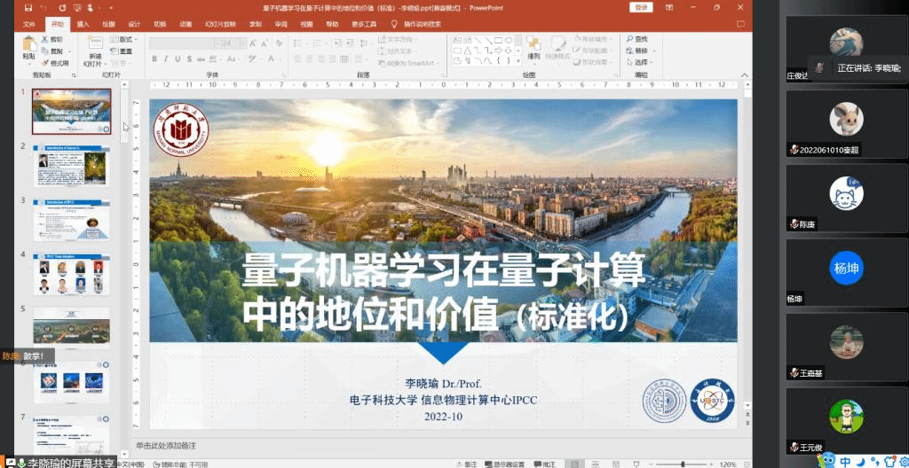 李晓瑜老师首先介绍了量子世界的几个特征,包括量子的叠加性、非局域性以及不可克隆性。随后对量子计算所凸现出来的优势展开讨论,其中量子计算与机器学习的结合更是实现量子人工智能的高效途径。在此基础上,李老师向我们介绍了量子机器学习的相关问题,主要研究如何从海量数据中快速高效地获取隐藏的、有效的、可理解的知识,建立数据驱动型的不同行业和领域的推理与决策模型。此外,李老师还介绍了中国量子计算的国际标准化工作的推进和未来发展。