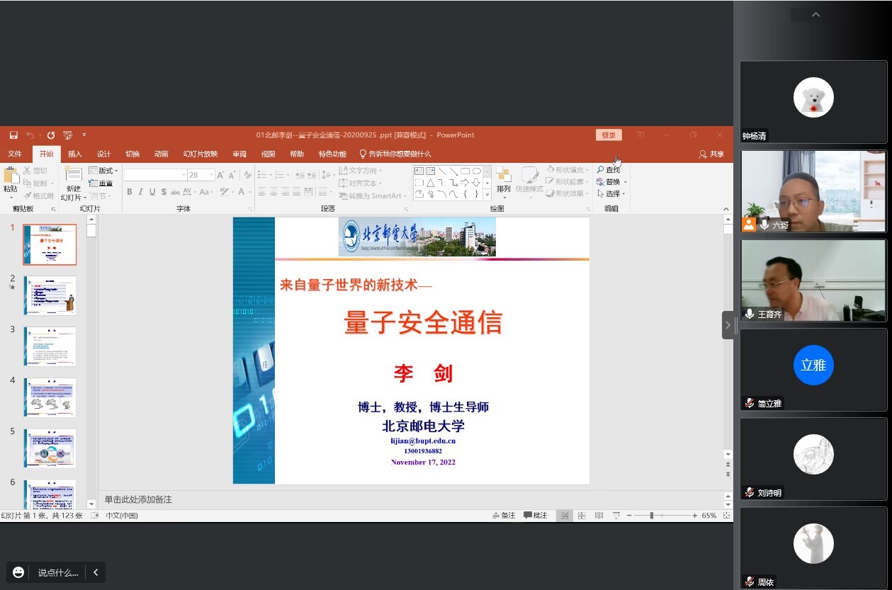 师生做线上专题报告,报告题目为“量子安全通信”,本次报告由学院王育齐副教授主持。