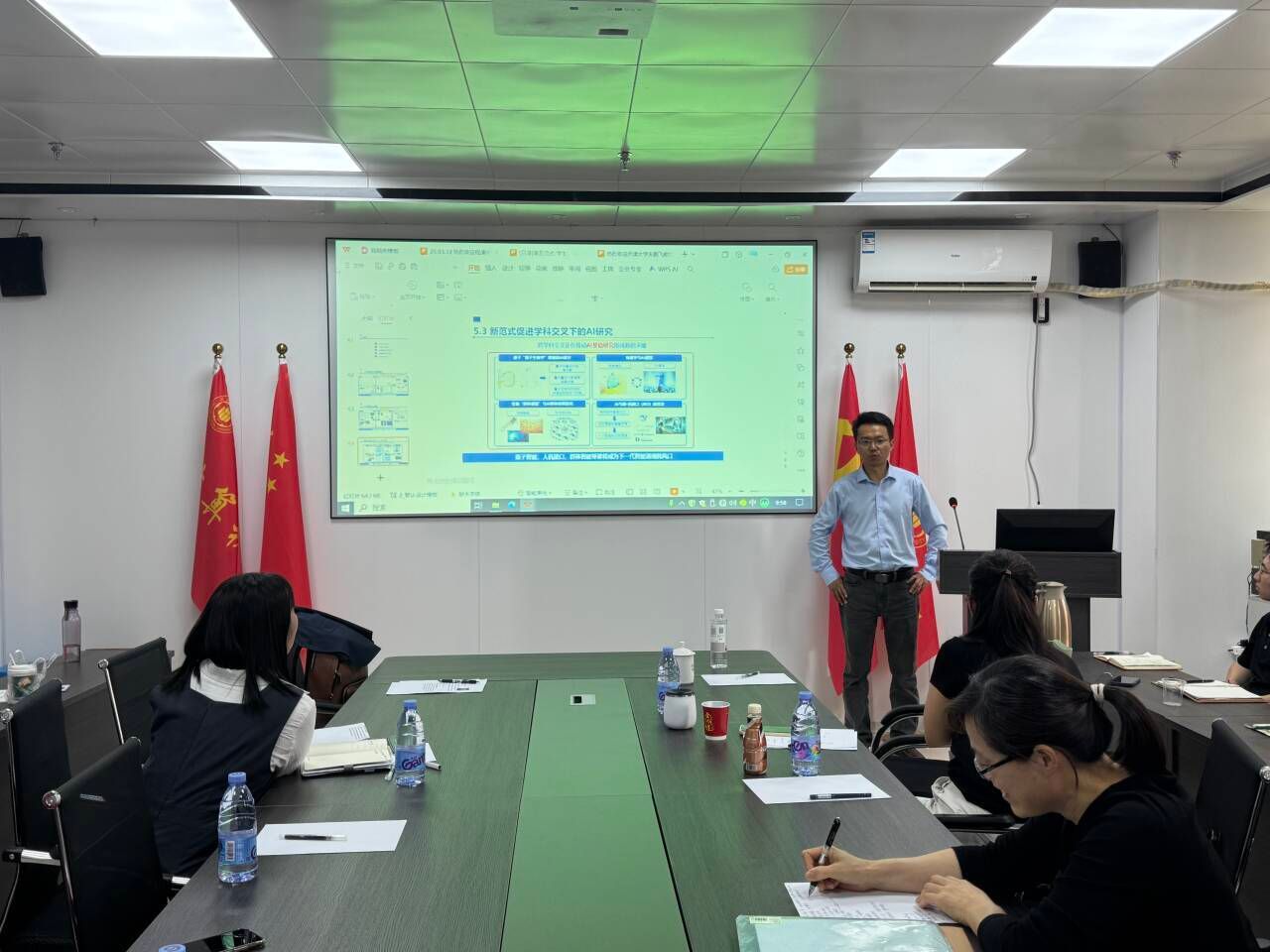 师生做题为“第五范式-人工智能驱动的科技创新”的线下专题报告。本次报告由学院黄慧副院长主持。