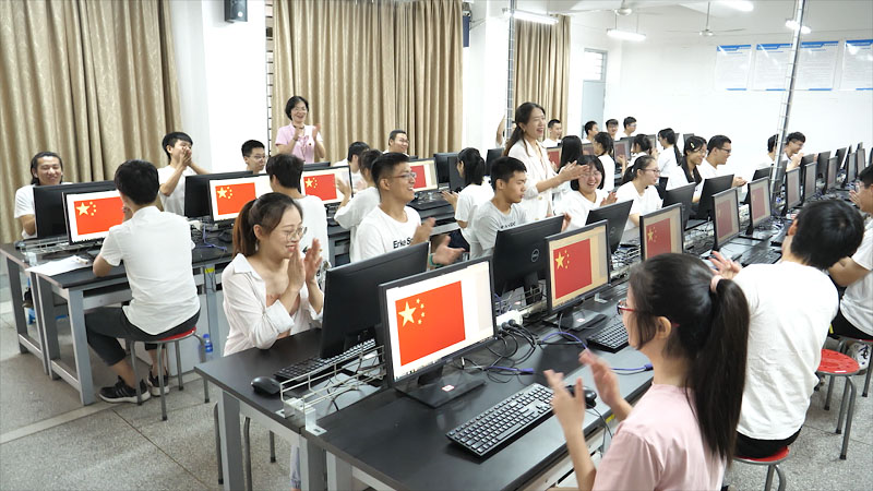 上午8点,在学院ACM实训室,学院党员在开展编程制作国旗动画的活动。活动中童先群和何秋红老师详细指导学生党员和其他ACM队的同学编写程序的要领和技巧,在师生的共同努力下,一面面国旗陆续在计算机上实现动画生成。瞬间,整个实训室里飘扬着一片鲜红的五星红旗。