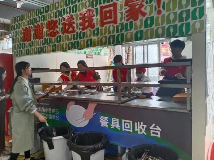 志愿者策划了“餐盘回收”活动,在大力宣传餐盘回收主动行动之外,希望通过身体力行影响他人的自觉行为。