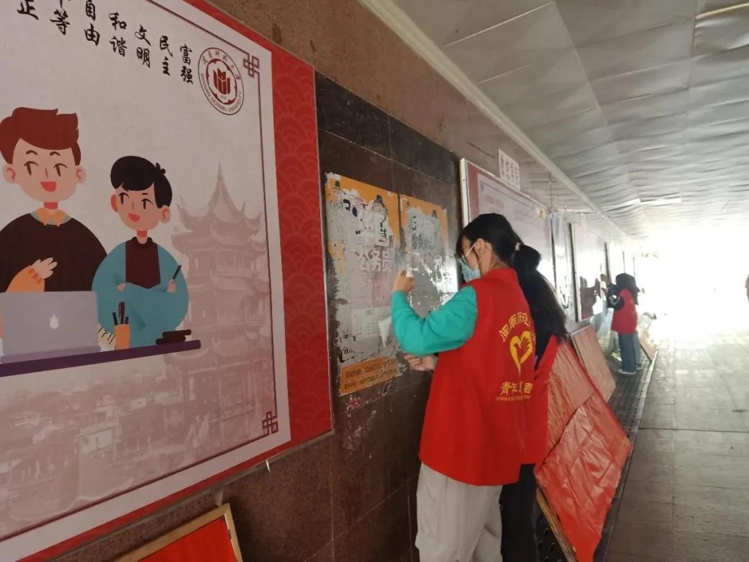 志愿者发起“小广告”清理活动,力争从身边小事出发改善校园环境,为广大师生营造一个特色鲜明,环境优美的校园环境。