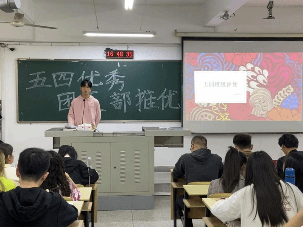 于4月8日下午在砺志楼417教室开展了以“永远跟党走,做时代新人”为主题的先进班集体评选活动。