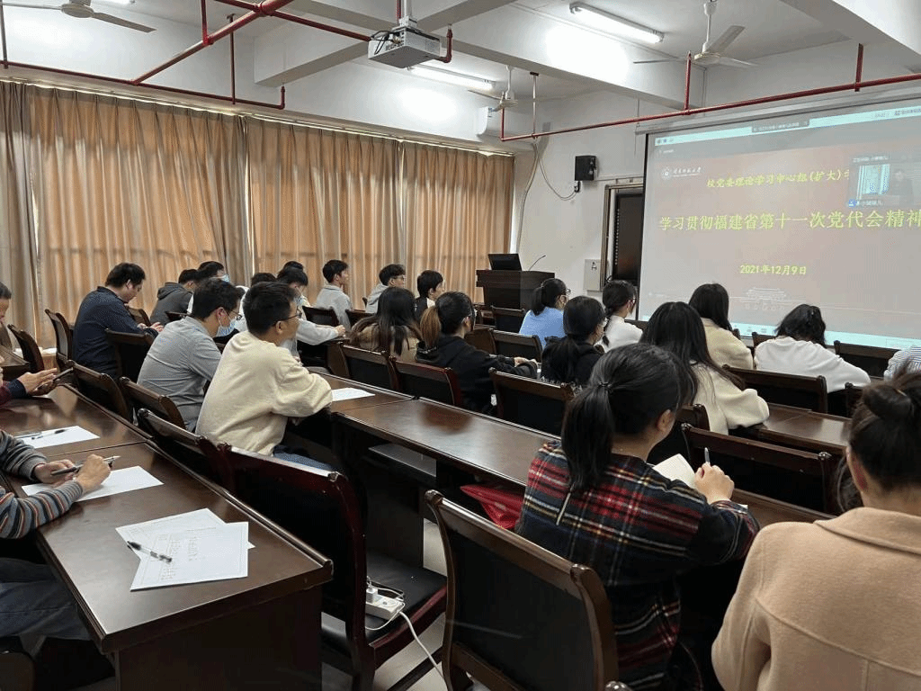 学院全体师生代表认真观看学习了福建省委宣讲团成员,福建社会科学院党组成员、副院长游炎灿作题为《党的百年奋斗重大成就和历史经验——学习贯彻党的十九届六中全会精神》的辅导报告。游炎灿紧扣习近平总书记在党的十九届六中全会上的重要讲话精神和全会审议通过的《中共中央关于党的百年奋斗重大成就和历史经验的决议》,围绕“五个深刻认识”,全面解读了全会作出新的历史决议的重大意义,系统讲解了党的百年奋斗的初心使命和重大成就,重点介绍了中国特色社会主义新时代的历史性成就和历史性变革,深入阐释了党百年奋斗的历史意义和历史经验以及以史为鉴、开创未来的重要要求。报告立意高远、重点突出,视野宽广、见解独到,具有很强的政治性、理论性和针对性,对与会人员进一步学习好、领会好、贯彻好党的十九届六中全会精神具有重要的指导意义。