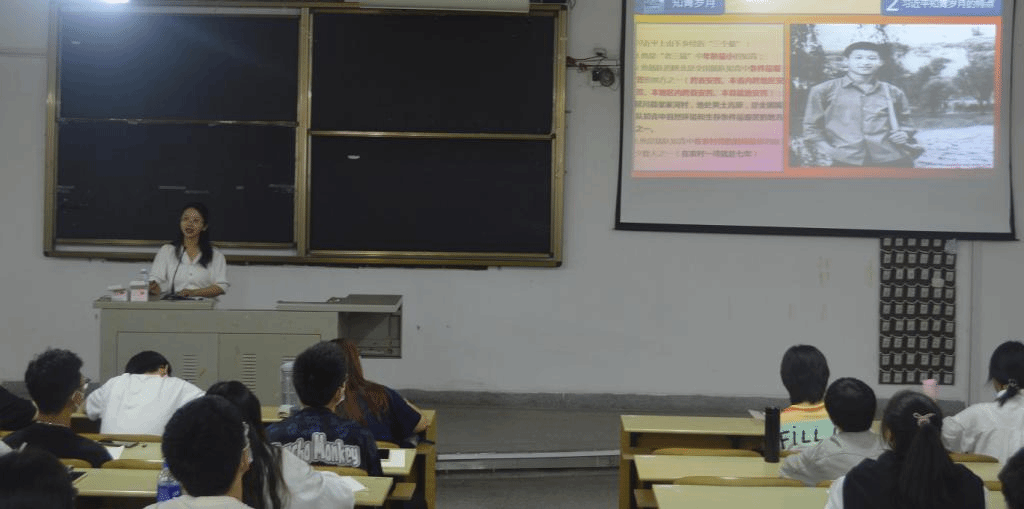 陈老师通过对《习近平的七年知青岁月》这本书的导读,再现了习近平总书记的成长历程。在七年知青岁月里,习近平总书记将中国共产党人的初心和使命展现得淋漓尽致,展现了习近平总书记从彷徨到充满自信的过程。陈老师说,当代大学生应该学习青年时期的习近平的优秀品质。首先,要树立矢志不渝的理想追求,坚定听党话,跟党走的信念。其次,要永葆肯吃苦,不怕苦的奋斗精神。紧接着,要根植爱国为民的家国情怀,学习总书记融入群众,植根群众,造福群众的群众工作方法。最后,要培塑实事求是和求真务实的工作作风,扎根基层,求真务实,在火热的青春实践中实现个人理想。
