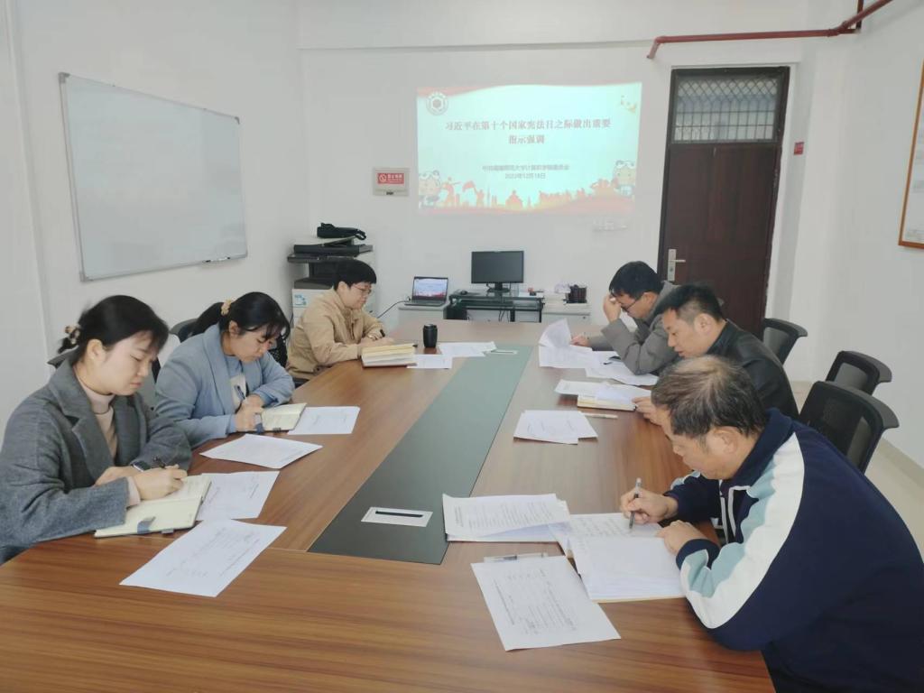 会议强调,要深入学习领会习近平总书记重要指示批示精神,创新多种载体在师生当中大力弘扬宪法精神,建设校园法治文化特色品牌,为服务“双一流”大学建设提供坚实法治保障;要胸怀“国之大者”,坚持立德树人,积极构建富有“科学家”精神的科研团队,引导学院科研成果产出为民族复兴服务,为区域发展服务;要深入学习宣传习近平文化思想,坚定文化自信,完善计算机类新工科人才人文素养培养体系,进一步强化工科人才的人文素养,厚植新时代大学生的家国情怀。