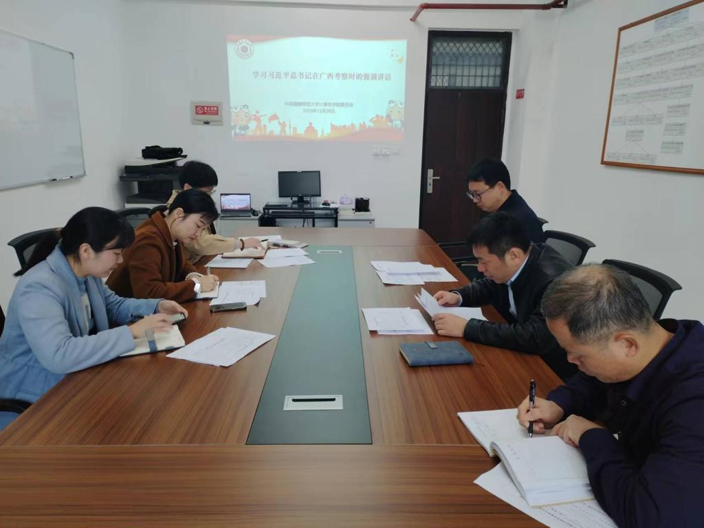 党委理论学习中心组学习会在科技信息楼北1109会议室举行。全体学院党委班子成员参加会议,学院党委书记祁超领学“习近平总书记在广西考察时的强调讲话、习近平会见中越两国青年和友好人士代表时的讲话、习近平在中共中央召开党外人士座谈会发表重要讲话”等专题,并作重点发言。学习会由祁超主持。