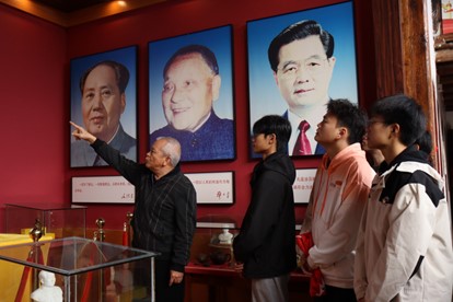 在讲解员的带领下,师生共同走进毛主席批语之乡教育基地进行学习,先后参观了展馆的起源篇、探索篇、发展篇和振兴篇,深入了解在上个世纪五十年代先锋村基层党支部带领村民实事求是,与时俱进,创立“四对比、五算账”群众工作法的光辉事迹。