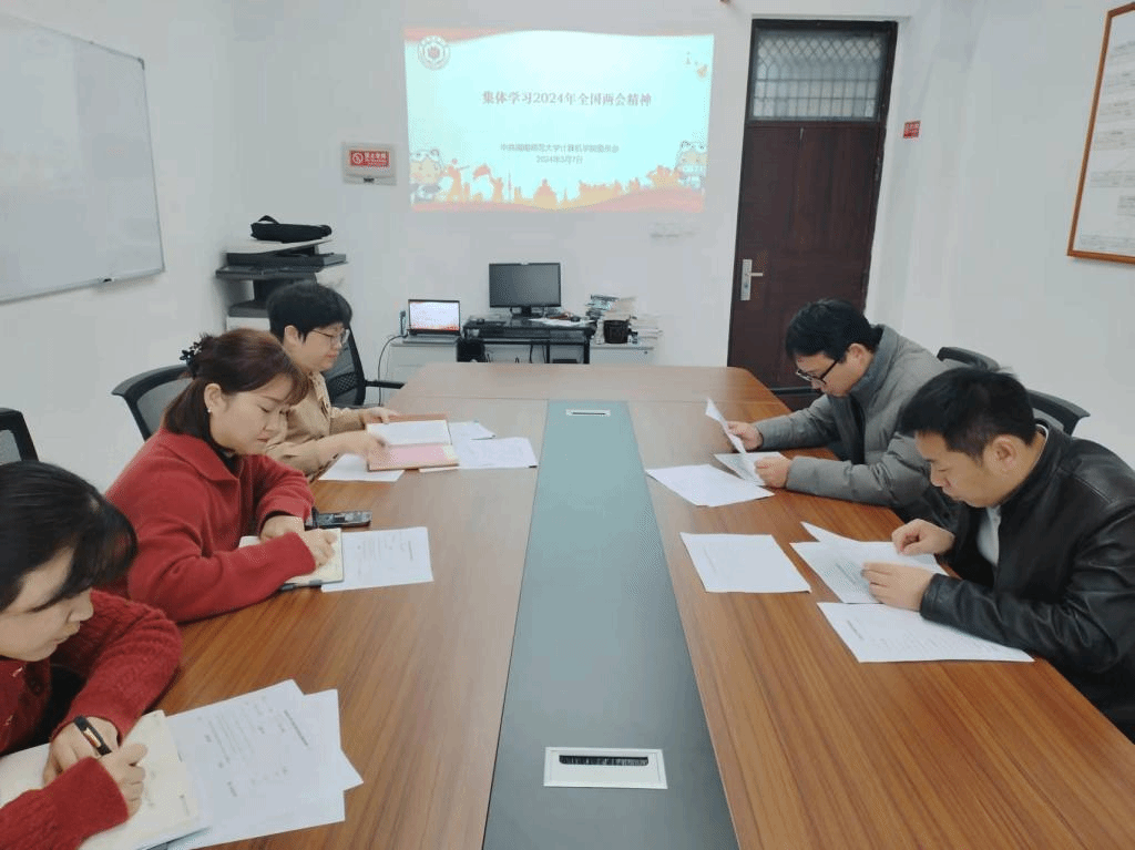 党委理论学习中心组学习会在科技信息楼北1109会议室举行。全体学院党委班子成员参加会议,学院党委书记祁超领学“2024年全国两会精神”等专题,并作重点发言。学习会由祁超主持。