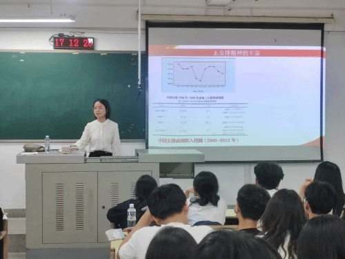 陈丽新老师围绕中国女排精神内涵进行了详细的阐释,由浅入深,从介绍女排精神的形成、发展史出发,引领学员们深切领悟女排精神的内涵。她强调,实现体育强国目标,要大力弘扬新时代的女排精神,把体育健身同人民健康结合起来,把弘扬中华体育精神同坚定文化自信结合起来。志气是青年之根,骨气是青年之魂,底气是青年之源。新时代的中国青年要有敢于担当的志气,宁折不弯的骨气和敢于胜利的勇气,让中华民族文明屹立于世界民族之林。
