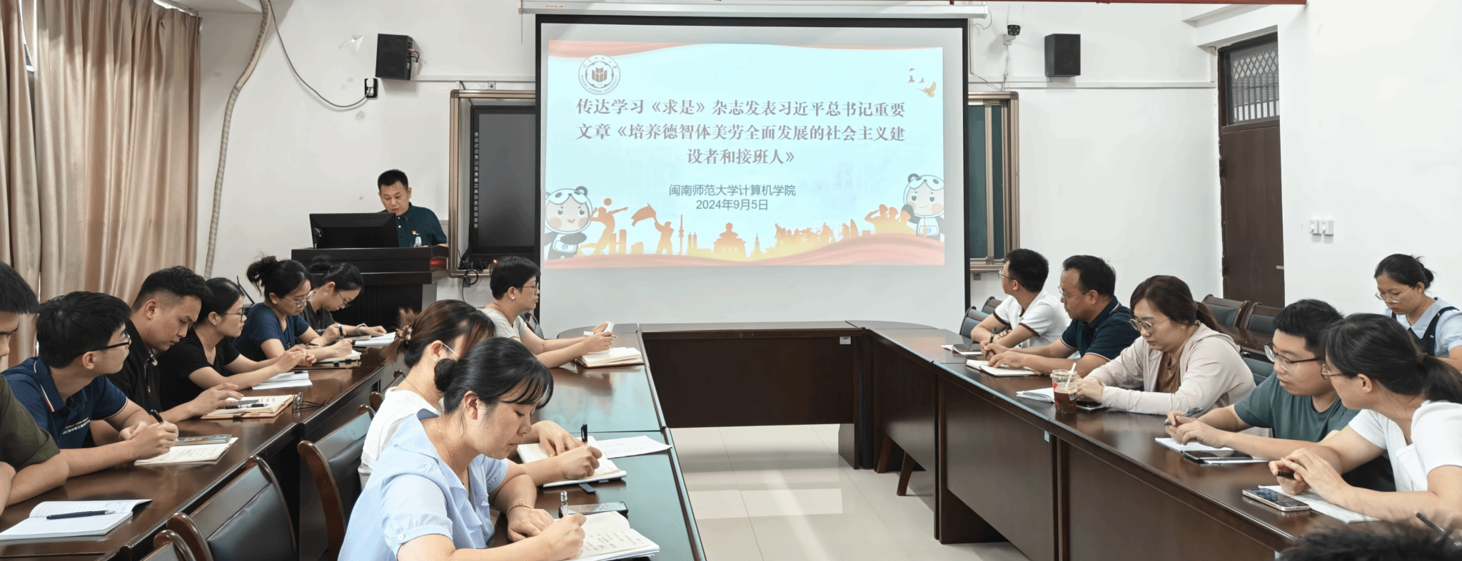 会议强调,党的二十届三中全会是在以中国式现代化全面推进强国建设、民族复兴伟业的关键时期召开的一次十分重要的会议,是具有里程碑式重大意义的盛会。全会审议通过的《中共中央关于进一步全面深化改革、推进中国式现代化的决定》,为新时代教育深化综合改革提出了要求,也为我们全面提升综合改革创新意识、把握高等教育战略地位、强化协同育人工作体系等各项工作思路提供了思想引领和目标导向。全院教职员工要不断提高政治站位,自觉把学习贯彻党的二十届三中全会精神作为当前首要政治任务,深入落实省委十一届六次全会精神和学校党委工作部署,自觉增强深化教育改革的主动性和责任感,扎实推进学院新工科人才培养改革创新,持续构建计算机类工科人才人文素养提升机制,着力培养学生复合创新能力,不断提升立德树人工作质效。