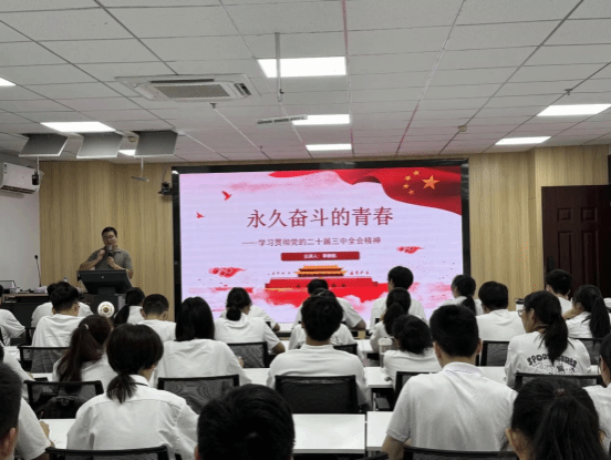 张诗群老师从学习贯彻党的二十届三中全会精神的内涵出发,对青年大学生如何成长为一名合格的中国共产党员进行深入浅出的阐述。他强调,“有理想,敢担当,能吃苦,肯奋斗”是新时代青年的本色,“饱满的热情和务实的作风”是新时代青年的宗旨。作为新时代青年大学生,要积极投身到各项工作中去,努力为党和人民的事业贡献自己的力量。
