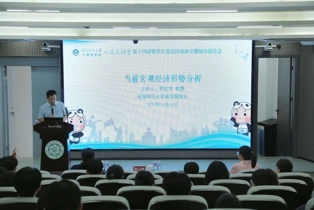 在达理楼南206举办人文大课堂第十四讲暨学生党员培训班专题辅导报告会。本次报告会特邀我校商学院院长乔红芳教授讲授题为《当前宏观经济形势分析》的专题报告,报告会由学院党委书记祁超老师主持。