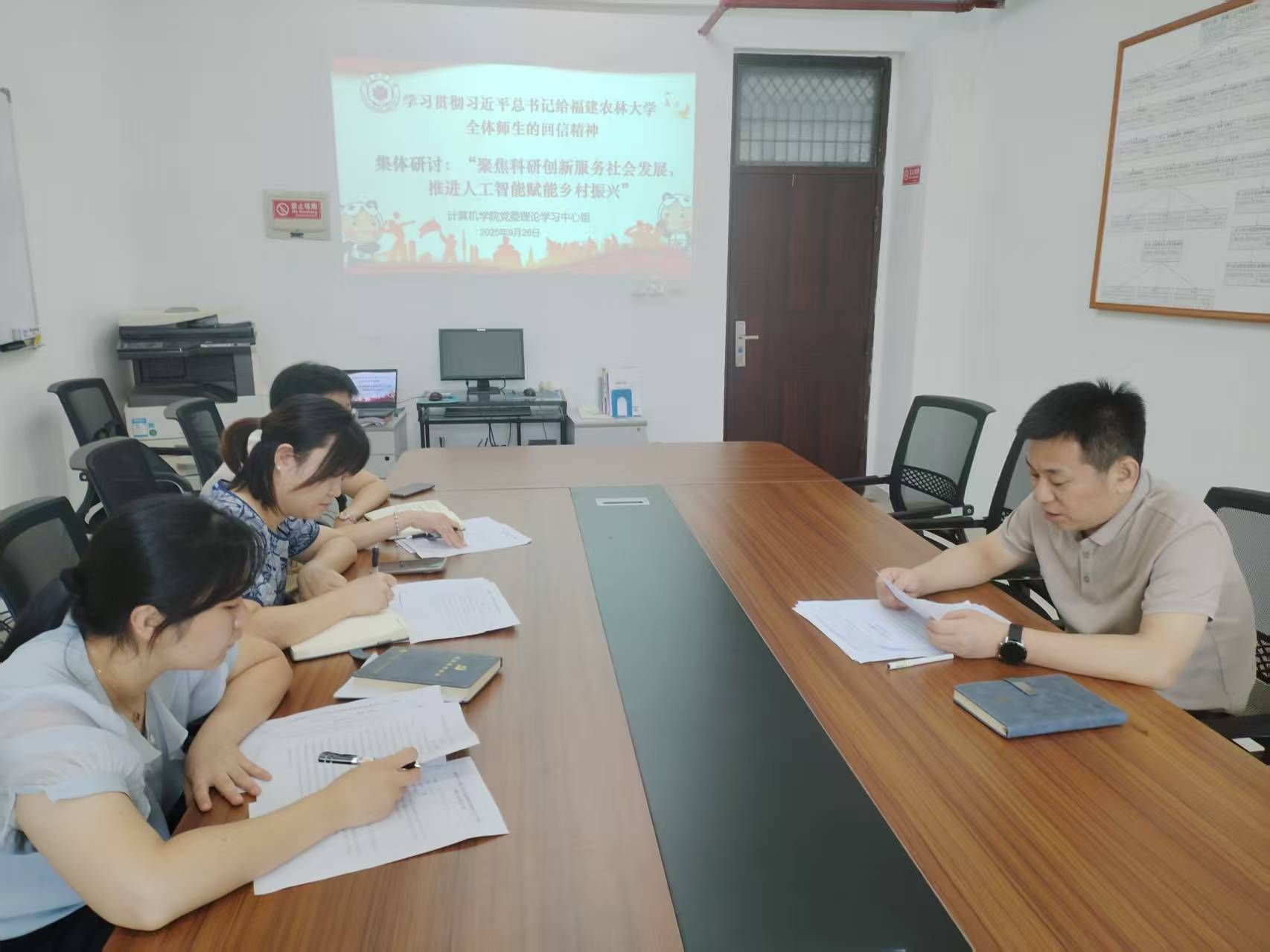 会上,学院党委书记祁超同志带领全体成员专题学习习近平总书记给福建农林大学全体师生回信精神,并与学院党委委员、副院长黄慧同志围绕“聚焦科研创新服务社会发展,推进人工智能赋能乡村振兴”主题作重点发言,其他班子成员结合分管工作展开交流。