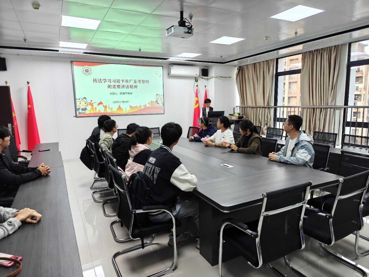 党委委员、副院长周豫苹为所联系的党支部本科生第五党支部成员讲授以“传达学习习近平在广东考察时的重要讲话精神、习近平给青年汉学家的复信精神”为主题的专题党课。她围绕两大精神核心展开深入解读,强调习近平在广东考察时提出的“坚定不移全面深化改革、推进高水平对外开放”等要求,与青年成长成才紧密相关。她结合计算机专业特色指出,青年党员要立足学科优势,在科技创新、数字赋能等领域勇挑重担,以专业能力响应国家发展需求。针对给青年汉学家的复信精神,她勉励学生党员既要筑牢专业根基,也要主动传播中国声音,借助数字技术搭建文明沟通桥梁。她要求全体党员将学习成果转化为行动自觉,严守纪律规矩、锤炼过硬本领,在学习科研和服务师生中发挥先锋模范作用,为国家科技自立自强贡献青春力量。