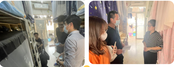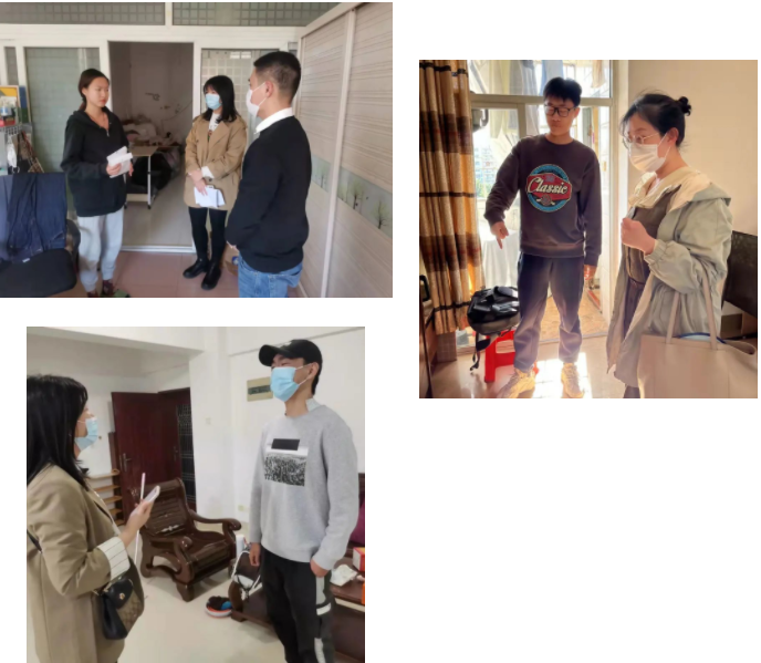 针对校内住宿的学生,学院加大教育和服务力度,积极组织辅导员下宿舍开展走访慰问工作,通过一对一的谈心谈话,全面了解学生的需要,协调解决学生提出的困难,确保学生心理、学习、生活等方面能保持最良好的状态。