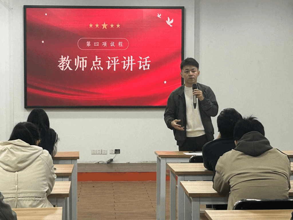 会议第四项议程,校团委教工团委副书记曾兆滨老师进行点评讲话。曾兆滨老师对支部在理论学习、团日活动及团员和青年主题教育方面的开展情况给予了肯定,对今后团支部的组织建设、立项活动申报等方面进行了详细的指导。他强调,支部今后应进一步深化团员教育,更加严谨有序地开展活动,同时在团日活动中融入更多创新性元素。