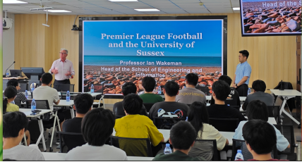 萨塞克斯大学工程与信息学院院长Ian Wakeman教授首先在科技楼南809为学生带来题为《英超俱乐部球迷之家如何通过信息工程串联》的精彩讲座,现场互动热烈。